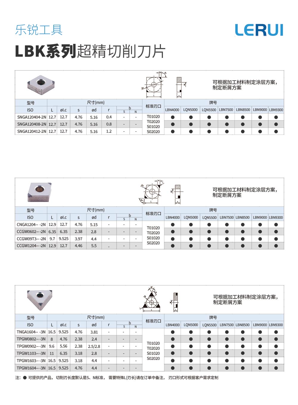 LBK系列PCBN超精切削刀片主要用于加工工件外圆表面,车端面,在汽车零部件加工中可以实现高速切削、高稳定性加工、以车代磨,加工铸铁切削速度可以达到1000m/min。